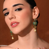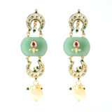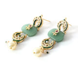 Stylish gold-finished danglers featuring green Polki accents and delicate craftsmanship. Perfect for adding subtle glamour to ethnic outfits.
