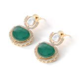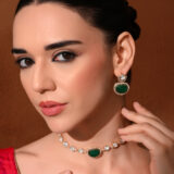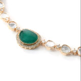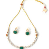 Delicate green necklace set with classic gold finish and matching earrings. Perfect for understated traditional elegance.