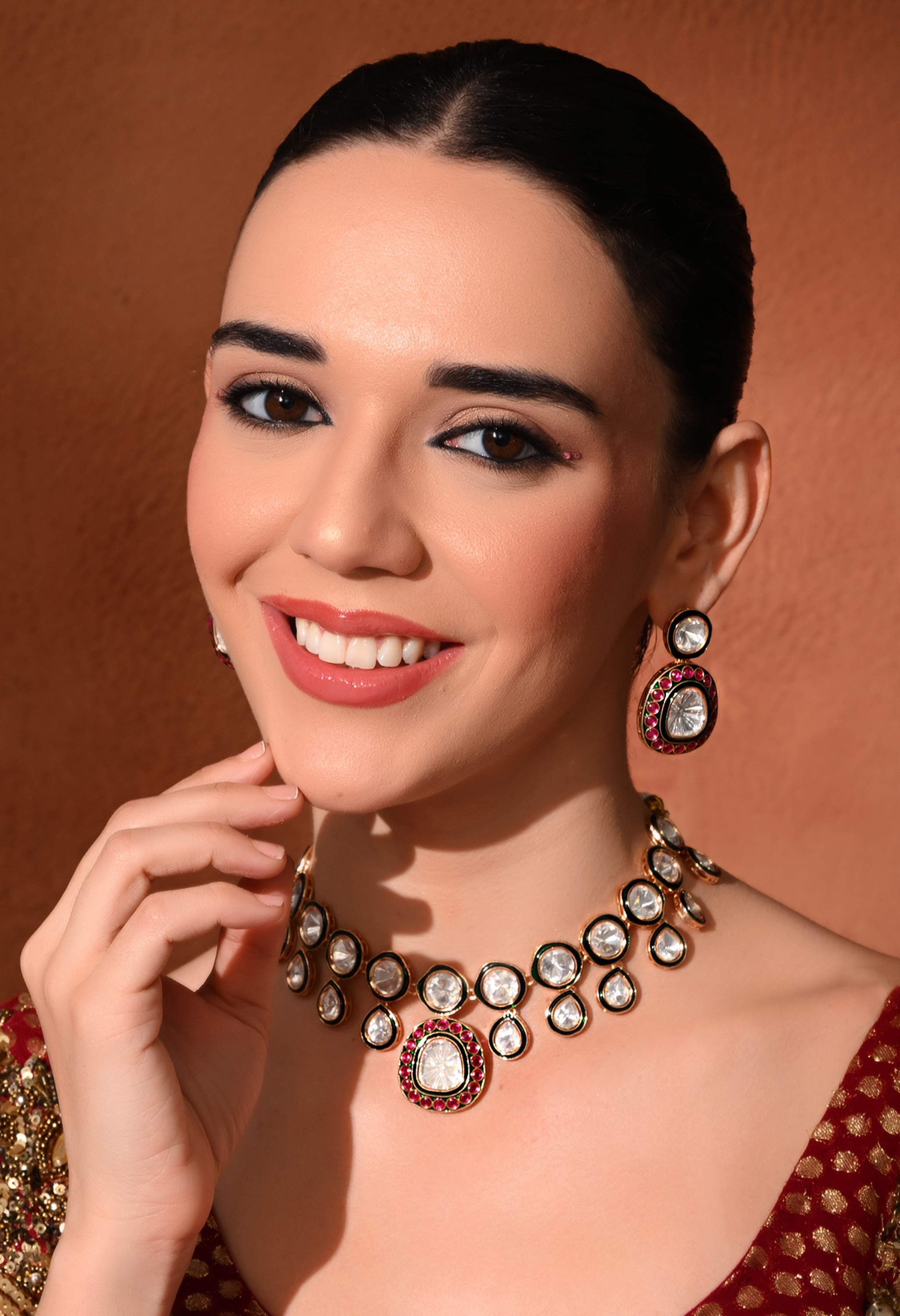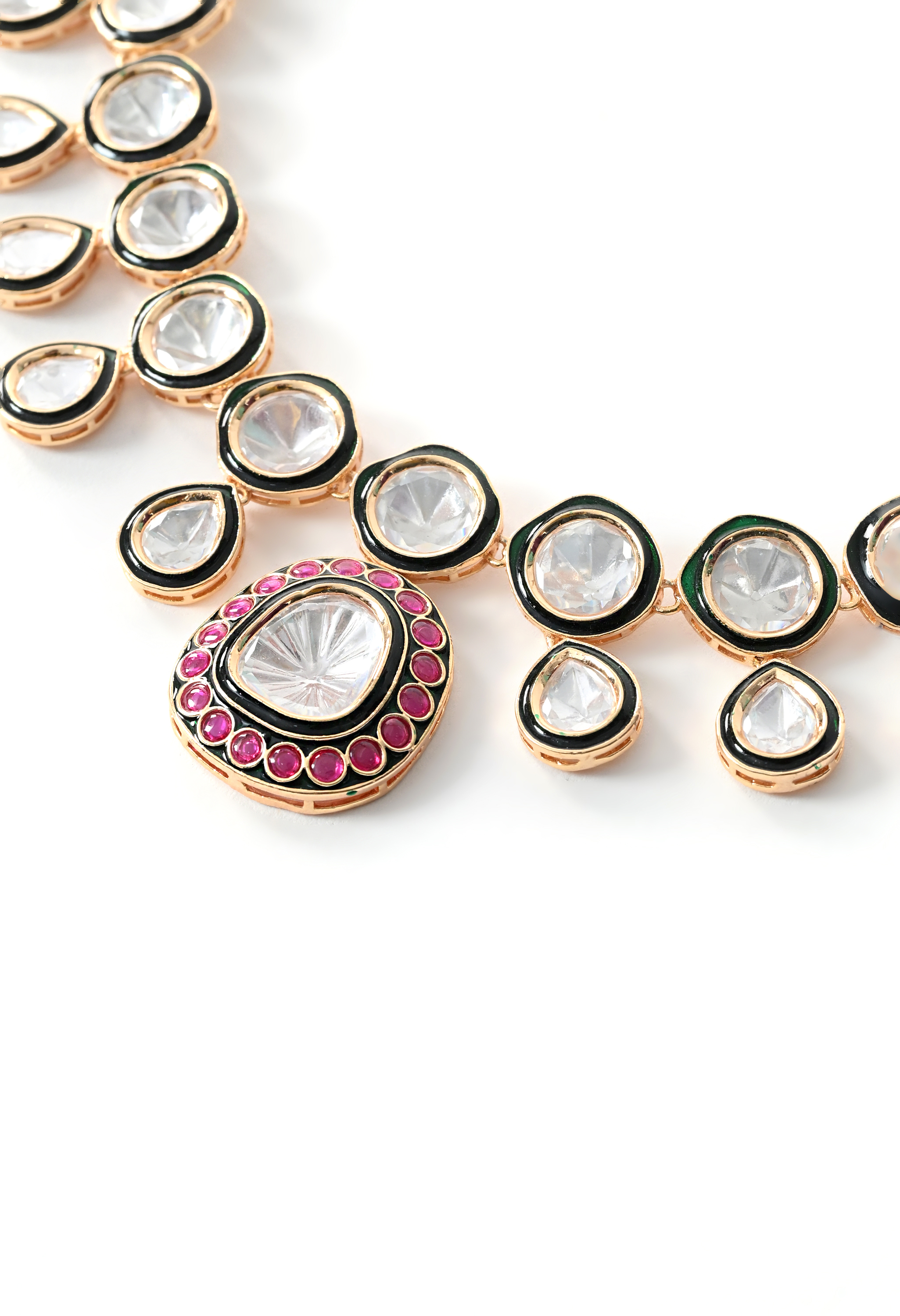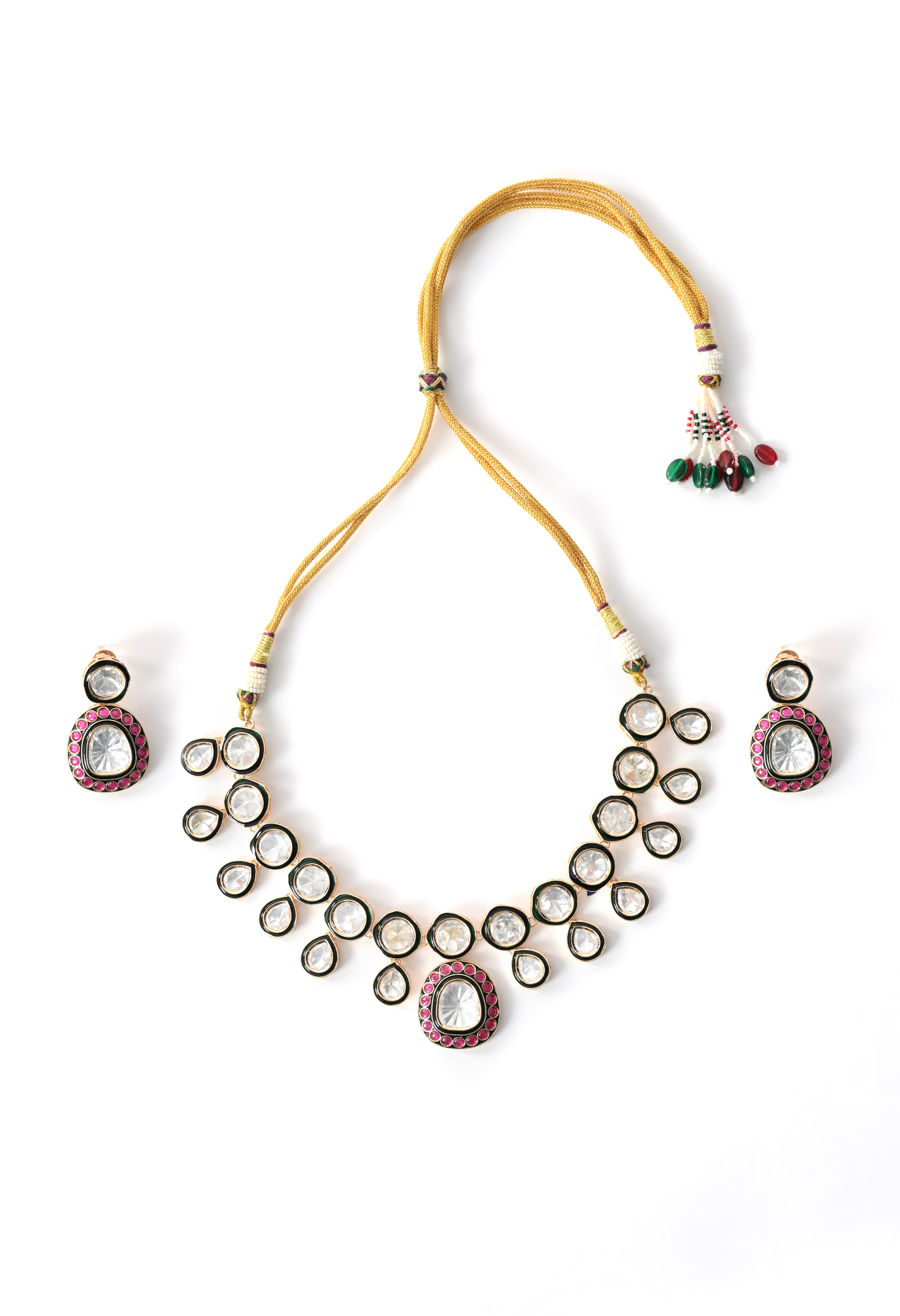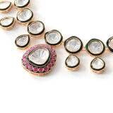 Versatile multi-color necklace set crafted with intricate Kundan Polki work and gold plating. Complements both festive and everyday ethnic outfits.
