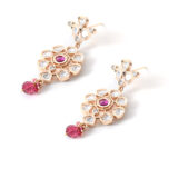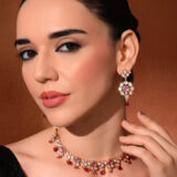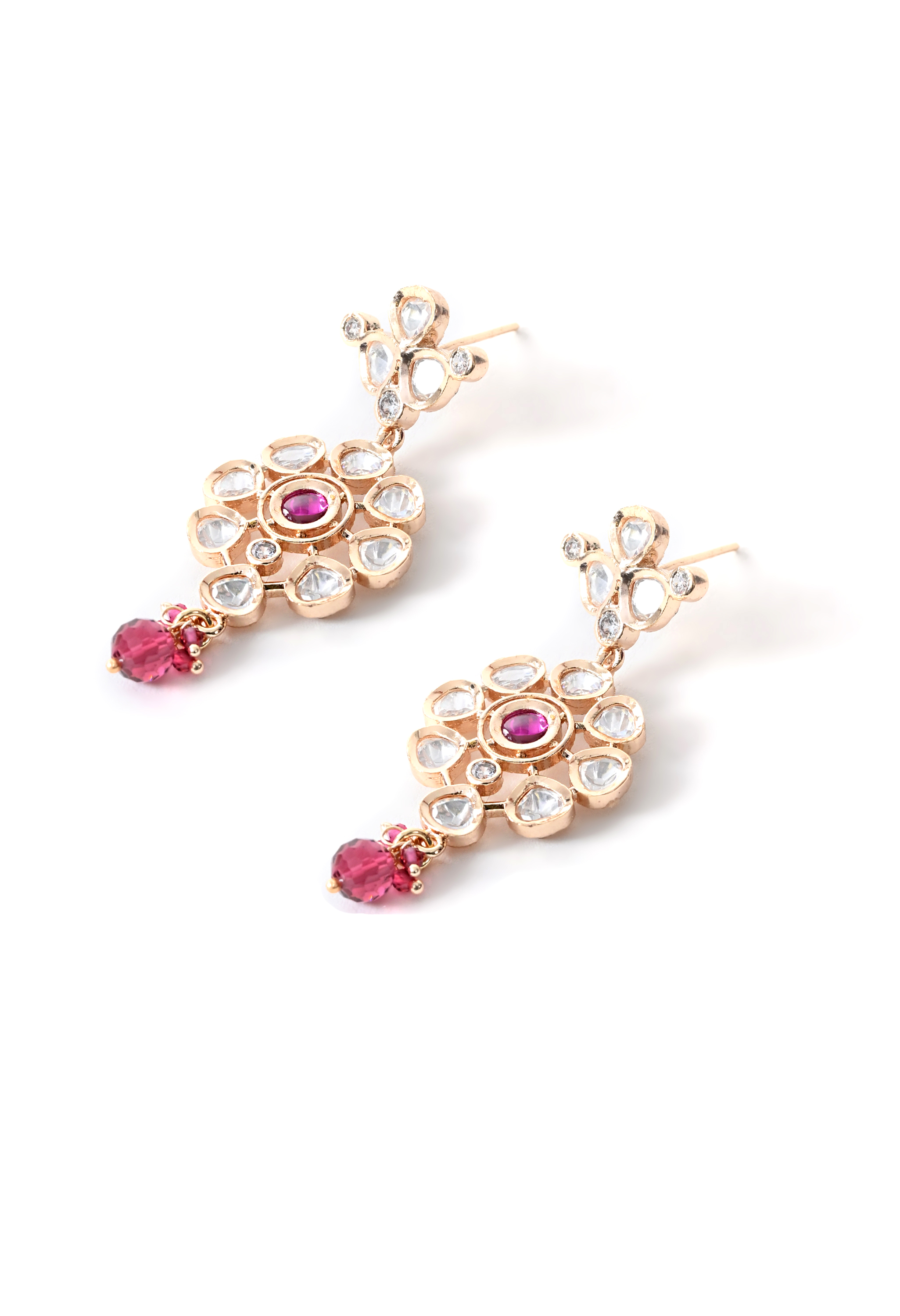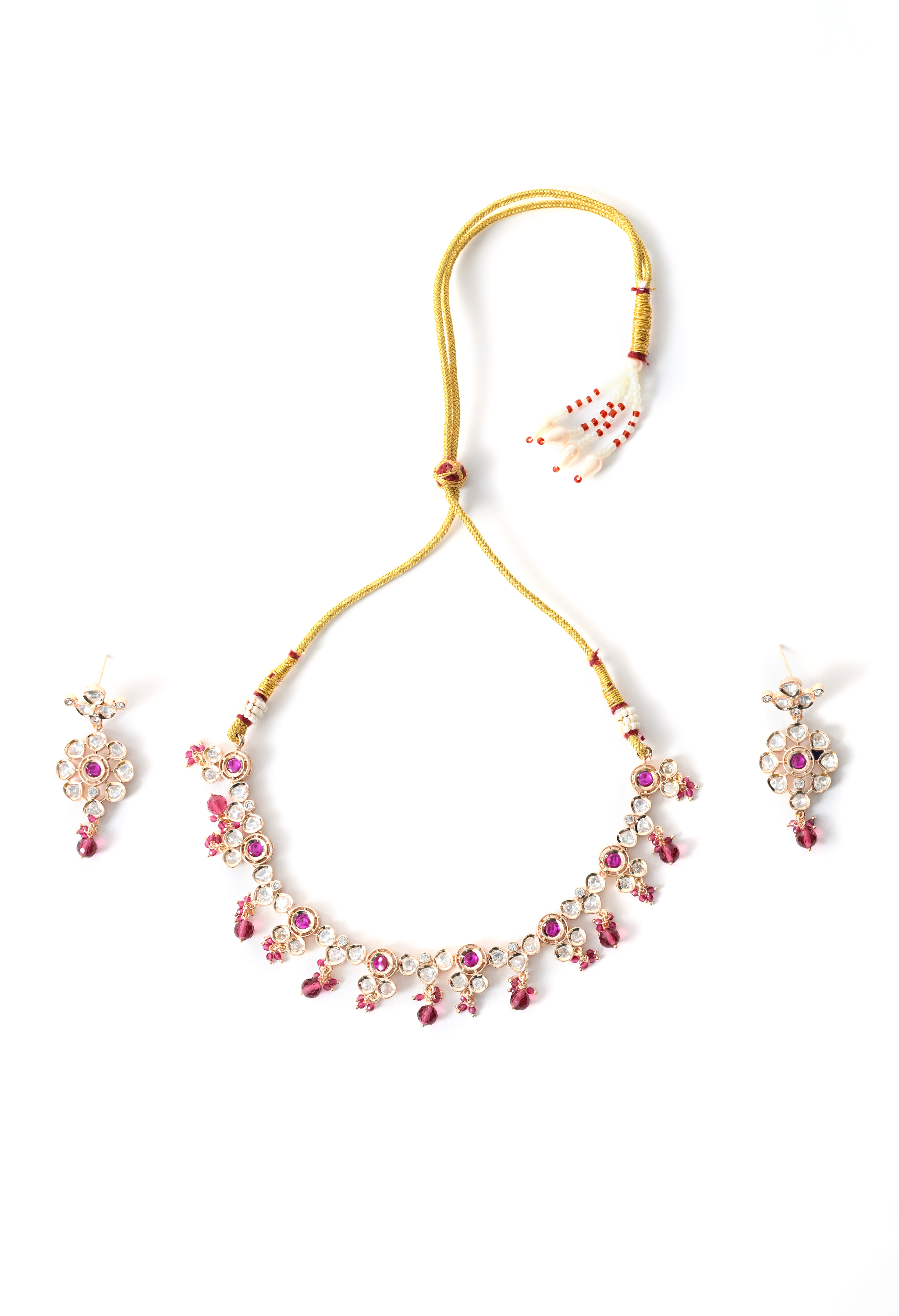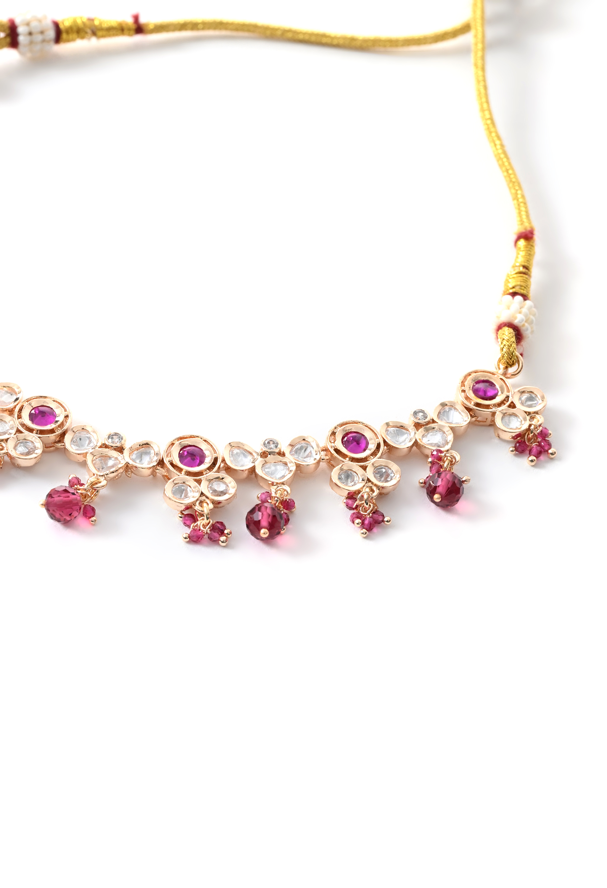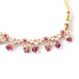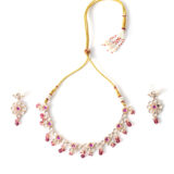 Soft pink stone necklace set crafted with gold plating and delicate detailing. Ideal for light festive and celebratory looks.