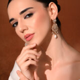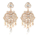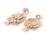 Elegant white stone danglers with gold plating and refined Kundan detailing. A versatile piece that complements both light and heavy ensembles.